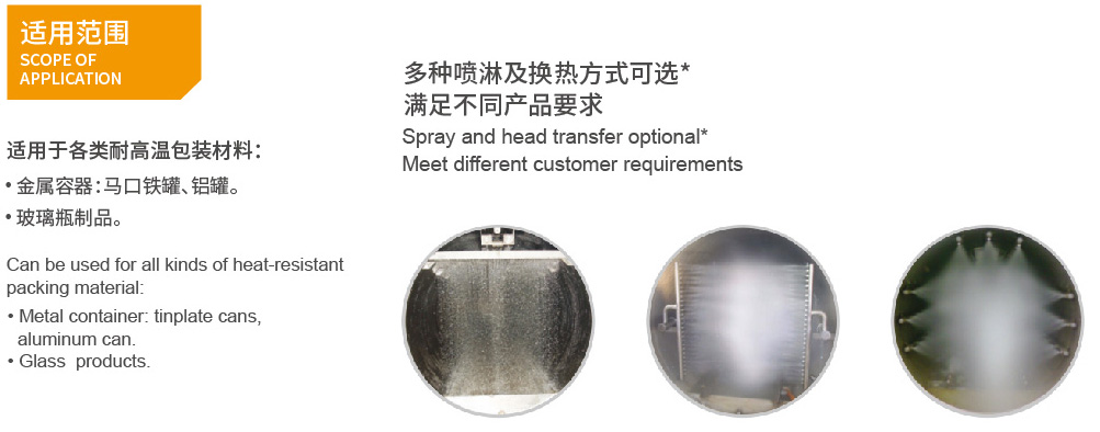 ? 減少蒸汽消耗,蒸汽、霧化后的殺菌水在殺菌釜內直接進行熱混合,提高升溫降溫的速度。